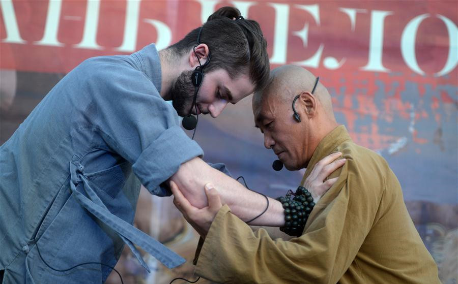 MOSCOW, June 15, 2016 (Xinhua) -- Students learn from Shaolin ...